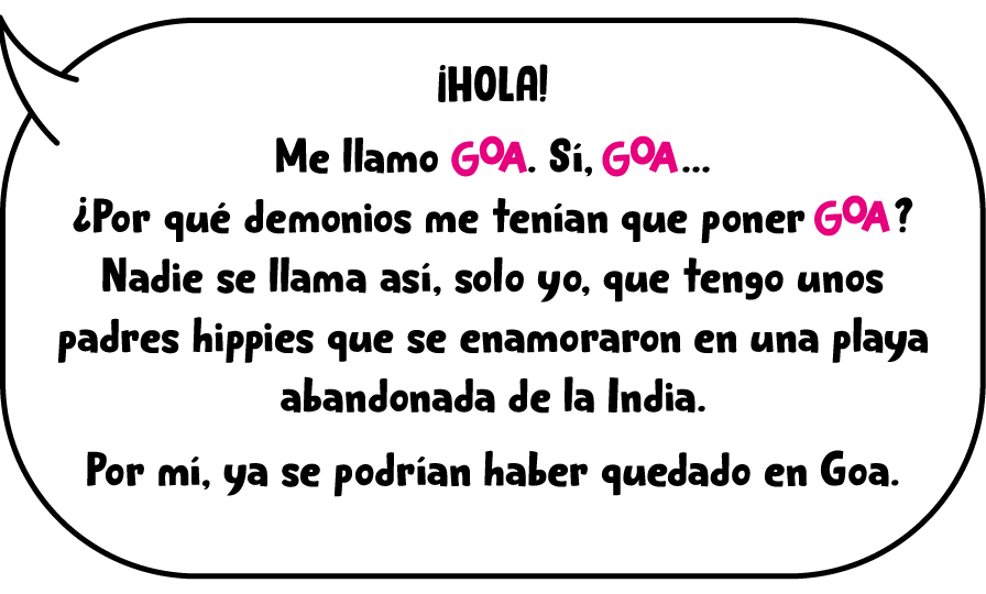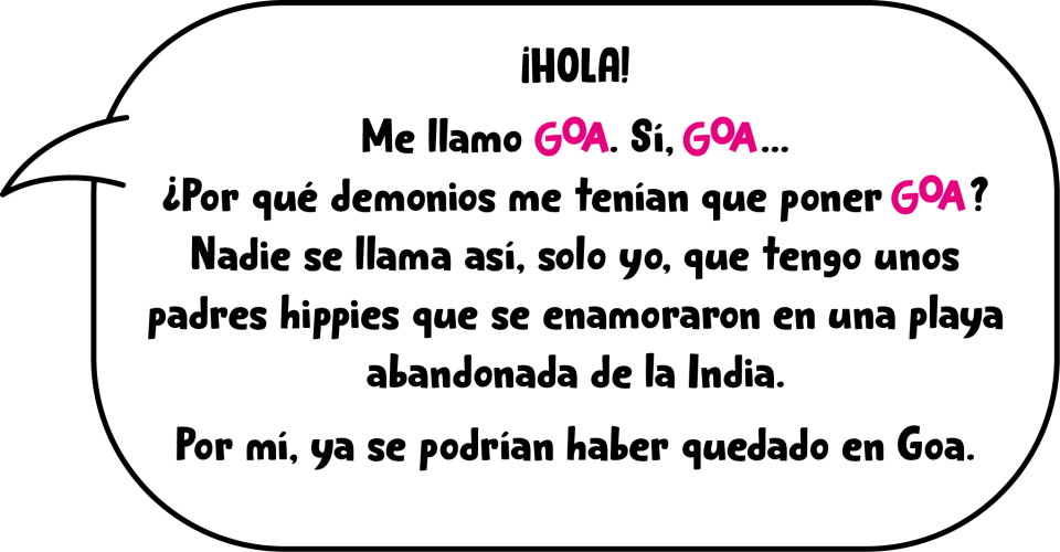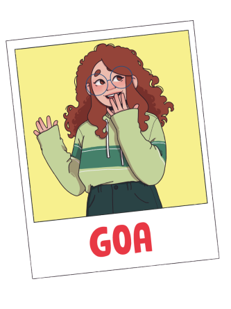 Goa es una niña algo más alta que sus amigas, le gusta vestir ancho y tiene el pelo muy rizado, tanto que a veces se le hacen rastas y las tiene que acabar cortando con las tijeras. A ella le gusta llevar la melena suelta (y a Klaus también, por eso la llama «leona» y ¡le encanta!) Tímida en entornos donde no se siente segura, pero extrovertida y suelta cuando está con gente de confianza. Goa es intensa, lo vive todo a flor de piel.