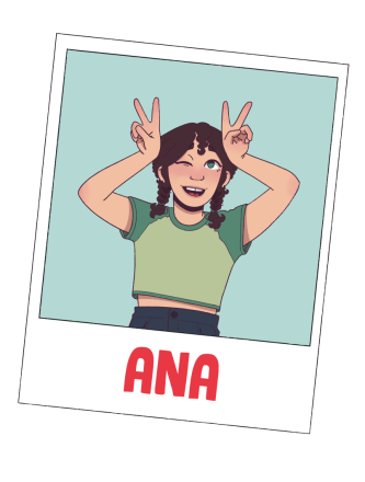 Ana es optimismo puro. Tiene el pelo negro ondulado que le baja hasta algo más abajo de los hombros. Tiene los ojos verdes y de un oído escucha menos que del otro. Siempre está de broma y parece que no se toma a pecho nada, todo lo contrario que Goa. Quizás por eso son mejores amigas, porque estando juntas, se equilibran.