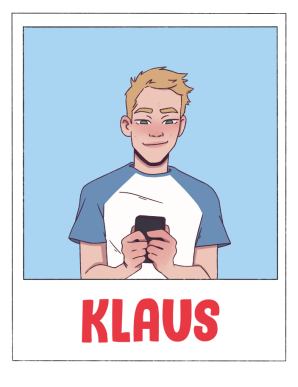 Klaus tiene un año más que Goa.Es simpático, buena persona y tiene mucho sentido del humor. Es alto, rubio y tiene los ojos de un verde claro muy bonito. Se conocen desde pequeños con Goa porque sus madres son amigas. Con el tiempo sus caminos se distanciaron y la familia de Klaus se fue a vivir a Berlín. Ahora Goa y Klaus se han reencontrado y ha surgido una chispa ente ellos que cada vez se hace más grande...
