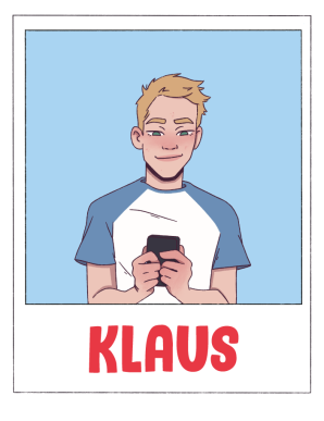 Klaus tiene un año más que Goa.Es simpático, buena persona y tiene mucho sentido del humor. Es alto, rubio y tiene los ojos de un verde claro muy bonito. Se conocen desde pequeños porque sus madres son amigas. Con el tiempo sus caminos se distanciaron y la familia de Klaus se fue a vivir a Berlín. Ahora Goa y Klaus se han reencontrado y ha surgido una chispa ente ellos que cada vez se hace más grande...
